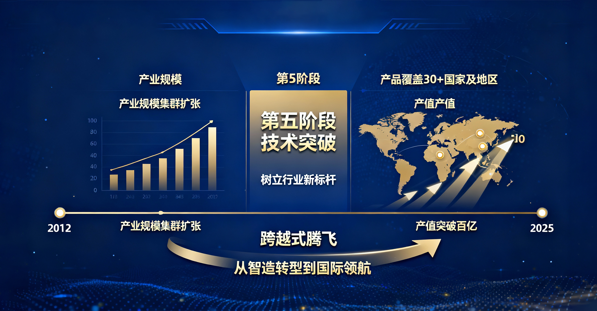 【星辰大海】以创新驱动质优升级,技术突破树立行业标杆,产业规模集群扩张,产品覆盖全球30+国家及地区,产值突破百亿,领跑行业。从智造转型到国际领航,实现跨越式腾飞。